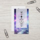 Den Hintergrund dieser spirituellen metaphysischen Karte zu bilden, ist ein Universum mit Sternen und Galaxien. Einige Farbtöne sind lila, türkisfarben, blau und rosa. Dieser Himmelsmetaphysische spirituelle kosmische Hintergrund kann als künstlerisch, neues Zeitalter und mystisch beschrieben werden. Eine wunderschöne Aquarell kosmischen Weltraum und Universum nebula Stern gefüllt Hintergrund bilden diese phantastische Visitenkarte. Diese moderne, einzigartige Karte ist genauso chic und feminin, wie sie stark und männlich ist.