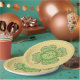 Dieser klassische vierblättriges Kleeblatt überlagert ein konzentrisches Kreisdesign mit Schichten keltischer Weben in verschiedenen grünen Farbtönen mit ein wenig Orange für Akzente.