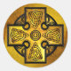 Keltisches Kreuz (Goldmetall) Runder Aufkleber
