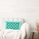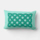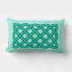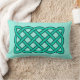 Kissen aus Lumbar in einem keltischen, rechteckigen, durchgehenden Knoten, symbolisiert die heilige Geometrie und die Verbundenheit des gesamten Lebens im Universum - ein türkisfarbenes Muster, das in tiefer aquamariner Form auf einem hellen aqua-Hintergrund dargestellt wird