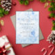 Elegante Hochzeitsacryl-Einladung mit Ihren Veranstaltungsdetails über einen handbemalten, blauen Aquarellhintergrund.