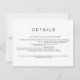 Diese Hochzeitsdetails Gehäuse-Karte verfügt über einen einfachen serifenlosen Schriftart und modernes minimalistisches Design. Es ist die perfekte Ergänzung zu Ihrer sauberen und modernen Hochzeitssuite. Sie können diese auch nutzen, um Unterkünfte oder Details zu jeder Veranstaltung anzuzeigen; Babydusche, Brautparty, Ruhestand Party, etc. Bearbeiten Sie *most*, um Ihren Anforderungen gerecht zu werden.