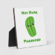 Niedliches Pickle-Zeichen mit Text, der eine Erinnerung Ihres WiFi-Netzwerknamens und Ihres Passwortes anzeigt.