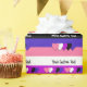 Papier mit der Fahne des Genderfluidity Stolz mit kleinen Herzen in der Mitte des Designs. Rosa, Weiß, Magenta, Schwarz und lila Fahne der Genderfluidity Pride-Bewegung; mit einem bearbeitbaren Textfeld für Ihren Namen oder Ihre Nachricht
