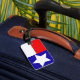 Behalt dein Gepäck mit diesem Anhänger leicht zu finden. Zeigen Sie Ihren Stolz auf den großen Staat von Texas mit einer Version der Staaten-Fahne. Eine der hinteren Felder füllt Ihre Informationen aus, um bei Verlust Ihrer Gepäckstücke eine einfache Rückkehr zu ermöglichen.