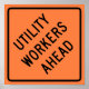 Internationale Straße und Autobahnwarnschild beraten die Arbeiter der Versorgungsunternehmen voraus.