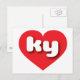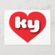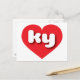 Auf dieser Postkarte befindet sich ein lebhaftes rotes Herz mit dem fett-weißen, abgerundeten Buchstabenkeil, der eine spielerische Abkürzung für den Staat des Bluegrass-Staat Kentucky darstellt. Die Rückseite der Postkarte ist leer und wartet auf Ihre handgeschriebenen Stimmungen oder Ihren personalisierten Text.