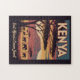 Kenya Elephants Illustration Travel Art Vintage Puzzle