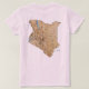 Die Vorderseite dieses T - Shirt zeigt mutig die kenianische Fahne mit ihrem markanten Schild und Speermotiv über schwarzen, roten und grünen Bändern. Hinter dem Bild befindet sich eine attraktive Landkarte Kenias.