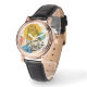 Uhr, Klassische Damenuhr mit schwarzen Lederarmband