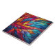 Ein atemberaubendes abstraktes Design, das an eine blühende Blume oder federn erinnert und aus lebhaften Rot-, Orangen-, Blues- und Gelbtönen besteht. Das komplizierte Muster aus Buntglas schafft ein Gefühl von Bewegung und Energie und ist damit eine perfekte Ergänzung zu jedem Raum. Ideal als dekorative Keramik Fliese oder funktionales Trivet, bringt dieses Stück Wärme, Farbe und künstlerischen Flair in Ihre Wohngestaltung.