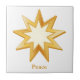 Der goldene neun Spitzstern, Symbol der Baha’i-Keramik-Kachel innen oder außen. Text kann auch mit einem Namen, einer Nummer oder einem Ort angepasst werden. ***Bitte beachten Sie, dass die goldene Farbe beim Design nicht metallisch ist.***