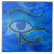 Keramik-Kachel mit Auge von Horus texturiert blau mit goldenem Kontur abstraktes Design. Das Horusauge ist in blauen Tönen auf verblassten Horusaugen im Hintergrund zu sehen.