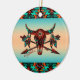 Personalisieren Sie dieses Weihnachtsschmuck "Einer von einem Kind"! Es verfügt über einen amerikanischen Buffalo-Schädel und Pfeile mit Federn auf einem türkisfarbenen und orangen Sonnenuntergang ...umgeben von türkisfarbenen, orangen und schwarzen Grenzen! Original Art Design von Künstler Kerry Miller.