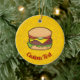 Darstellung des Cartoon von Cheeseburger. Junk Food Kontur Icons Gelbe Muster Hintergrund. Benutzerdefinierter Text auf beiden Seiten.