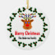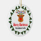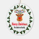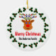 Bild eines Weihnachtsrentiers, umgeben von Heiligen, auf weißem Hintergrund.