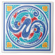 Setzen Sie ein kleines Yin Yang in Ihr Leben mit diesem kreisförmigen Design von zwei miteinander verflochtenen Fischen schwimmen in Wellen. Ideal für diese Pisces in Ihrem Leben oder für jeden Fan von aquatischen astrologischen Symbolen!