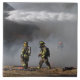 Eine Keramik mit einem Foto Feuerwehrleute bei einem Brand.