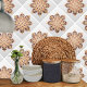 Dekorative Kachel mit Medaillon/Mandala in braunem Gold und Orange. Zeichnen Sie es oder legen Sie es in eine Schachtel. Oder Sie können es in Ihrer Küche Backsplash installieren. Das ist und originelles Design vom Fay Jones Day.
