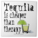TEQUILA IST BILLIGER ALS THERAPIE. Ein Schuss von Tequila mit einer Scheibe von Limonem und Salz und das Sprichwort, "Tequila ist billiger als Therapie". Cocktail-Spaß.
