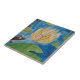 Exotisch und farbenfroh, ein auffälliger und attraktiver Frosch und Wasserlilien original Aquarell. Der schüchterne kleine Frosch, braun und türkisblau gestrichen, sucht nach einem sicheren Lilienpolster, zu dem man springen kann. Das tiefe Wasser des Teiches hat prächtige gelbe Wasserlilien und reiche grüne Lilienpolster, die auf der Oberfläche schwimmen, und es wachsen tiefe braune Polster.