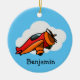Kleines Rotflugzeug Design Keramik Ornament mit anpassbarer Hintergrundfarbe und Personalisierung.