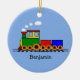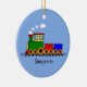 Kleines Zugdesign-Ornament mit anpassbarem Text und Hintergrundfarbe.