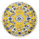 Die Keramik ist in Gelb, Blau und Weiß gehalten.