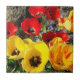 Einer der hübschsten Anblicke im Frühling sind alle wunderschönen Blume, die blühen. In diesem atemberaubenden Blumenbild des Fotos haben sich lebendige Tulips aus Narbenrot und Gelb geöffnet, um die warme Frühlingssonne aufzuwärmen und so einen lebhaften Farbspritzer zu schaffen.