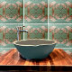 Diese dekorative Keramik Kachel verfügt über metallische Gingko-Blätter aus Kupfer auf einem grünen Hintergrund. Das Gingko-Blatt ist ein klassisches Kunsthandwerk-Motiv. Diese Kachel wurde für den Einsatz in den Zuhause des Handwerkers Bungalow entwickelt. Diese kann auf einem Küchenbacksplash, Bad oder sogar Kamin verwendet werden. Diese bedruckte Kachel ist eine Variante der handgefertigten Kachel von Oregon Artist Fay Jones Day.