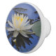 Dieser Keramik-Knopf zeigt eine wunderschöne Wasserlilie, die in einem Teich in Connecticut schwimmt. Copyright: Marjorie Tietjen