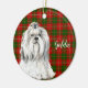 Aquarellbild des Hundes von Lhasa Apso auf festlichem kariertem Hintergrund grün und rot. Personalisieren mit dem Namen oder einer speziellen Nachricht