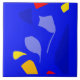 Diese Keramik Kachel zeigt die Noten von Gelb, Hellblau, Orange und Rot in Form eines Blattes auf dem Hintergrund des ultramarinen Raums.