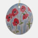 Schöne wilde rote Pappkuchen tanzen in einer warmen Brise im Hütte-Garten. Vor dem Hintergrund eines makellos blauen Himmels schaffen die blühenden roten Blütenblätter, die schwarzen Zentren und die saftigen grünen Stiele und Blätter ein buntes, charmantes Blumendesign im Sommer. Genießen Sie jeden Tag die Schönheit der wilden roten Mohnblumen, wenn Sie diese originale Aquarell wählen.