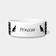 Katzenfutterschüssel aus weißer Keramik hat eine schöne farbenfrohe Imitat, Diamantmuster auf einem schwarzen Hintergrund. Fügen Sie den Namen Ihrer Katze bei der Personalize-Option hinzu, und ihr Name erscheint zwischen den beiden Katzengrafiken. HAMbyWhiteGlove.