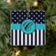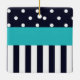 Dieses Design zeichnet sich durch ein kleines Polka Dot Design oben und ein gestreiftes Muster unten aus. Das Ornament wird dann mit einem türkisfarbenen Rand mit einem Monogramm-Logo in der Mitte hervorgehoben. Mit dem benutzerfreundlichen Tool können Sie dieses Produkt mit Ihrem eigenen Initial personalisieren.