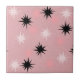 Diese Atomic Pink Sternexplosion Keramik Tile hat den ganzen modernen Spaß der Küche Ihrer Großmutter, abzüglich des klebrigen Linoleums. Das kitschige Design ist mit einem rosa Hintergrund mit goldenen Falten und zufällig platzierten Sternexplosionen in schwarz und zwei Rosatönen gestaltet. Dieses Vintag inspirierte Muster ist Mod genug, um stylisch und Retro genug zu sein, um klassisch zu sein. Mit diesem minimalistischen Design lassen Sie sich etwas Liebe geben.