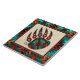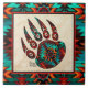 Brighten Sie Ihre Zuhause mit dieser einzigartigen "One of a Kind" Tribal Bären Paw Keramik Tile! Es verfügt über eine amerikanische Stammbär-Paw auf einem Sandsteinhintergrund aus Tan...Umgeben von einer Südwestgrenze in Türkis, Orange & Schwarz.
