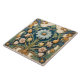 Blühende Fliesen mit zentraler blauer Blume, umgeben von rosa und gelben Blumen, grünen Blätter und verzierten Wirbel, alles Set auf dunkelblauem Hintergrund.