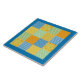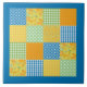 Eine hübsche Keramik, mit einem Imitat-Flickwerk von Daffodil-Drucken, mit Polka Dots und Karo Ginghams in grün, orange, gelb und blau und weiß. Fügen Sie einen Holzrahmen hinzu, der als Trivet verwendet werden soll. Teil der Posh & Painterly 'Daffy-down-Dillies' Kollektion.