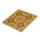 Diese dekorative Akzent Kachel zeigt Medallions. Die Tile wiederholt, lassen Sie sich ein paar für einen Brennpunkt in Ihrer Küche Backsplash zusammenstellen. Die Farbtöne Ocker, Orange und Gelb sind auf einem kaffeebräunlichen Hintergrund gehalten. Nutzen Sie dies auf Ihrer Küche Backsplash, Bad oder Kamin. Es ist perfekt für Hütte oder Bauernhof. Dieses Design stammt aus Oregon Fliesenhersteller Fay Jones Day.