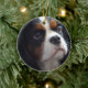 Dies ist ein rundes Weihnachtsbaumschmuck mit einem Original-Foto eines bezaubernden Trikolors Cavalier King Charles Spaniel.