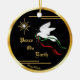 Mit diesem wunderschönen "One of a Kind" Weihnachtsschmuck können Sie Ihren Weihnachtsbaum persönlich gestalten und dekorieren! Eine ruhige weiße Taube fliegt unter den Sternen und trägt einen Olivenzweig mit blühenden roten und grünen Ribbons mit einer goldenen Grenze... Verbreitung von "Weltfrieden"! Dies ist ein originelles Kunstdesign des Künstlers Kerry Miller."