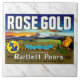 Diese Keramikfliese zeigt ein altes Bild eines Obstkisten-Etiketts für "Rose Gold" Bartlett-Birnen. Die Etiketten wurden von Gruppen kalifornischer Erzeuger Anfang bis Mitte des 20. Jahrhunderts verwendet, der Künstler ist unbekannt. ►Quadratische Fliesen sind in zwei Größen erhältlich: 10,8 cm im Quadrat oder, wie hier gezeigt, 15 x 15 cm im Quadrat. Kunstbilder können nicht entfernt, aber angepasst werden. ►►Das Hintergrundbild (ein simuliertes weißes Marmorbild) kann (über den Menüpunkt Hintergrund) in Ihr bevorzugtes Muster oder Ihre bevorzugte Farbe geändert werden. Geeignet für die individuelle Rahmung oder Gruppierung mit anderen Fliesen für eine dekorative Anwendung an einer Wand, einem Tisch usw. Ist ein großartiges Geschenk, kann mit anderen ähnlichen Fliesen kombiniert werden (für ein Obstgeschäft, eine Hausbar usw.). ►