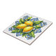 Diese Keramikfliese wird mit einem bedruckten Zitronen-Kunstfliesenmotiv gezeigt.