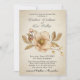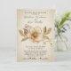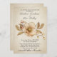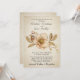 Diese maßgeschneiderte Hochzeitseinladung besticht durch ein rustikales Cottagecore-Blumendesign. Der Hintergrund ähnelt einem verblassten Pergamentpapier. In der Mitte befindet sich ein Vintages Bild einer weißen oder cremefarbenen Blume und Wildblume. Die Namen des Ehepaares werden über den Wildblumen gedruckt, die unten stehenden Angaben zum Veranstaltungsort sind gedruckt.