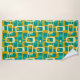 Dieses Strandtuch ist ein modernes Design aus abgerundeten Rechtecken, mit Ovalen in Retrofarben von türkis, aquamarin, weißlich und goldfarben. Wenn Sie das gleiche Design mit verschiedenen Farben gewollt haben, schreiben Sie mir.
