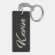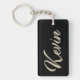 Ein sehr schöner edler personalisierter Schlüsselanhänger im whitegold Lettering Look auf schwarz für Kevin.