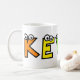 Lustiges Cartoonschriftbild mit Cartoon mustert, die Jungen Namens-KEVIN formulierend. Finden Sie mehr Namen in dieser Reihe. Leicht fertigen Sie besonders an und wählen Sie Ihre eigene Hintergrundfarbe. Bild verfügbar auf verschiedenen Geschenken und Produkten.