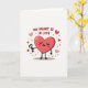 This Valentine's Day card shows a shiny red heart character standing in the middle, smiling with closed eyes and light pink cheeks. It has thin black arms and legs, and one hand holds up a small gold key with a tiny heart shape at the top. Around the heart, several small hearts in pink and dark red float nearby, along with a few little sparkle marks. The background is plain white, which keeps the focus on the heart and the key. Near the top, the card says “MY HEART IS IN LOVE” in thick, hand-drawn black lettering. The overall scene feels sweet and romantic, like a simple way to say you’ve fallen for someone 💘❤️.